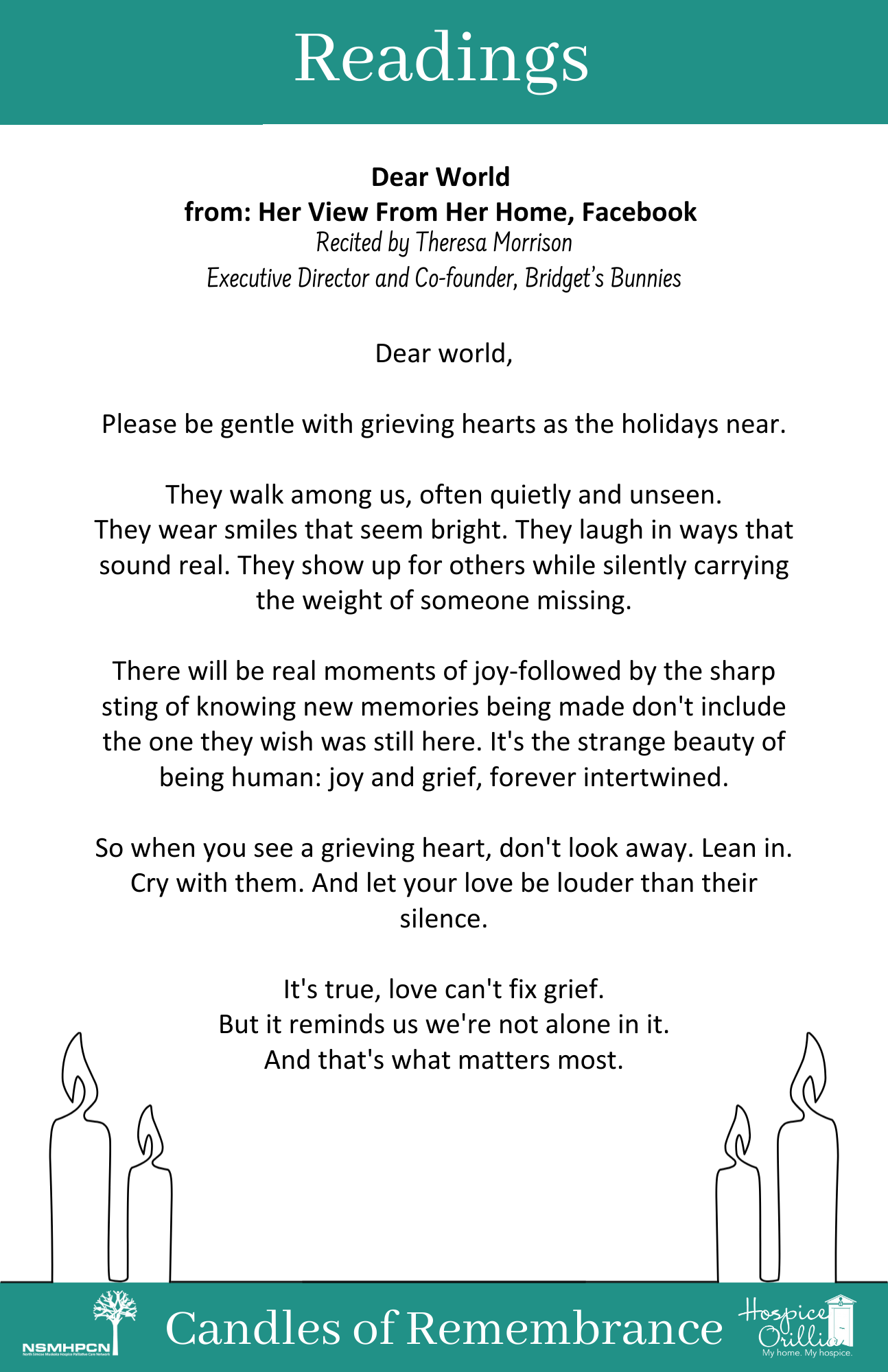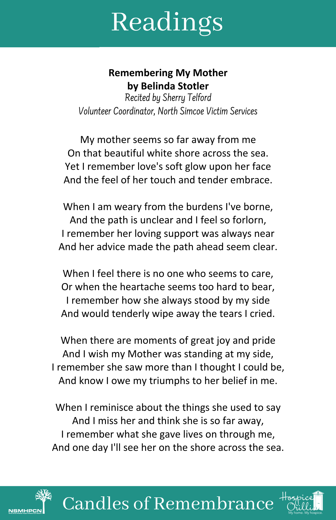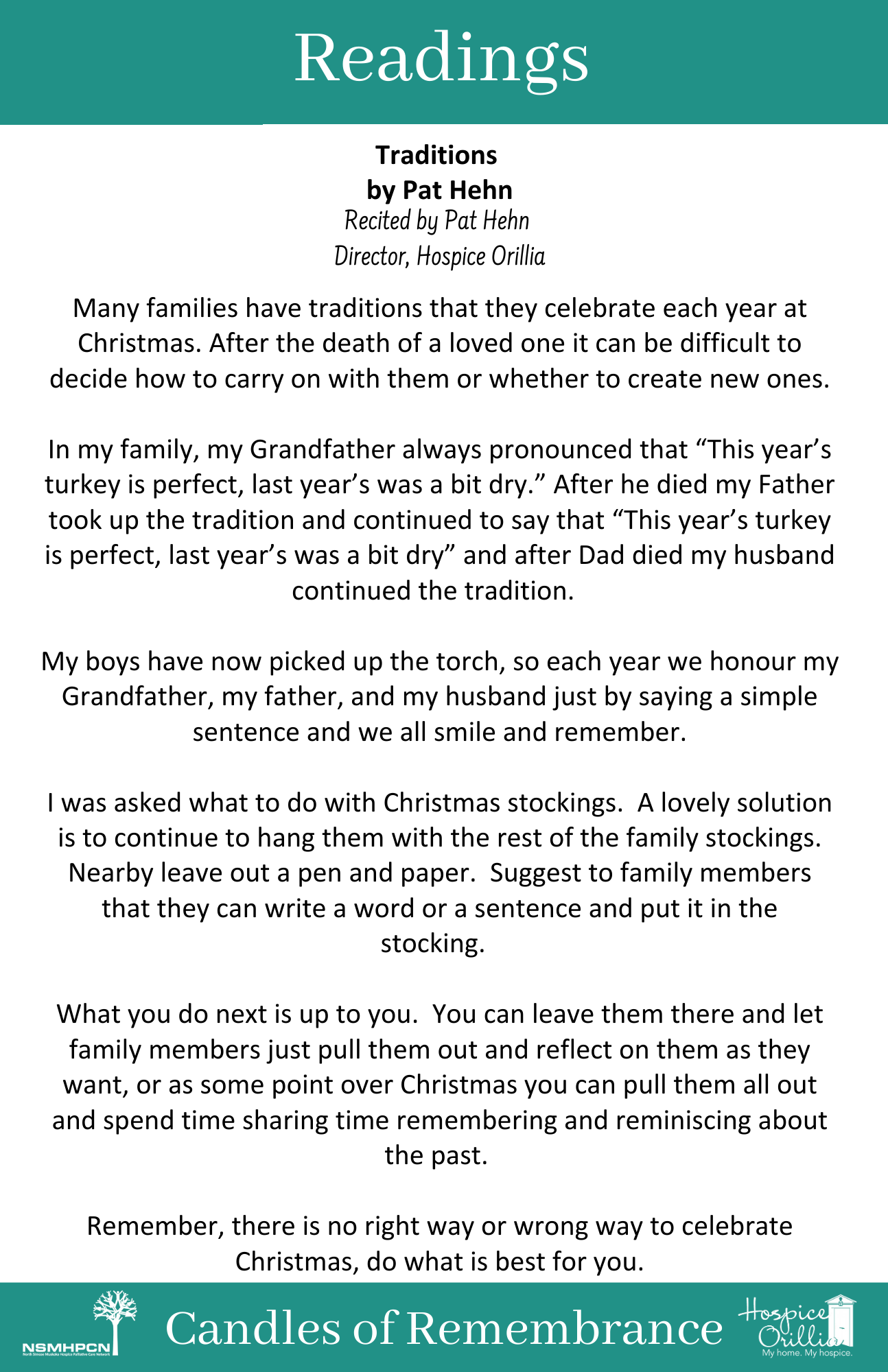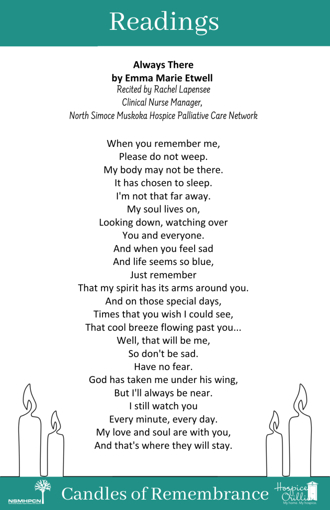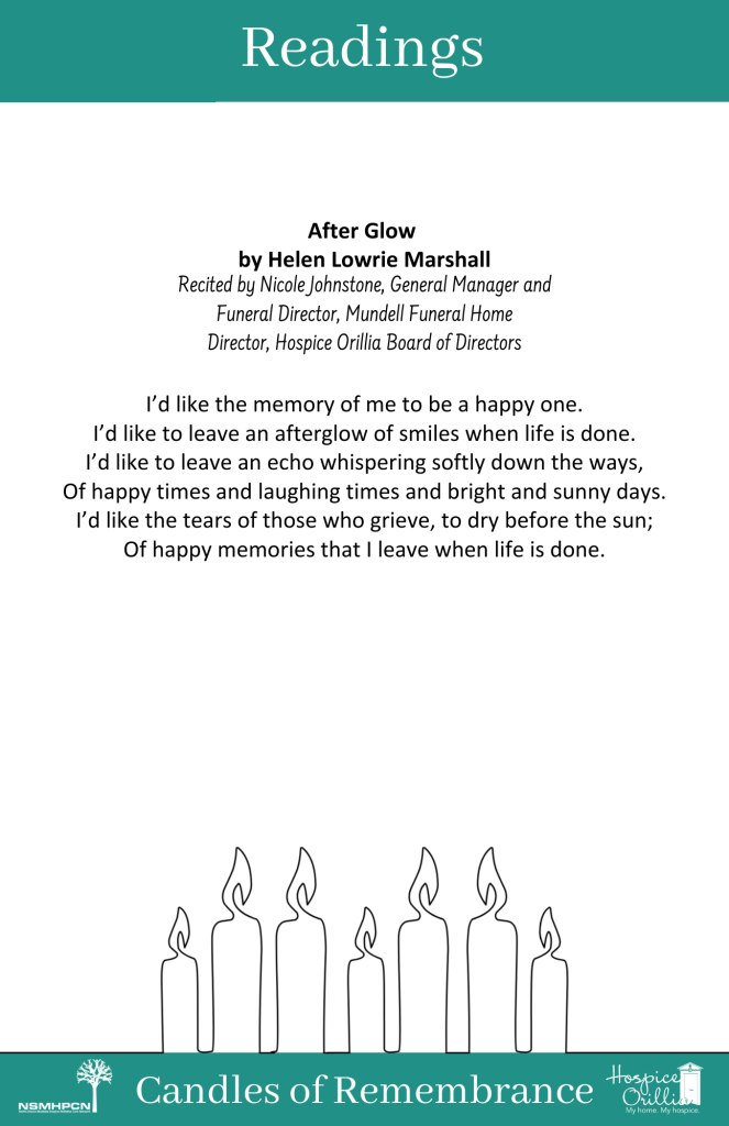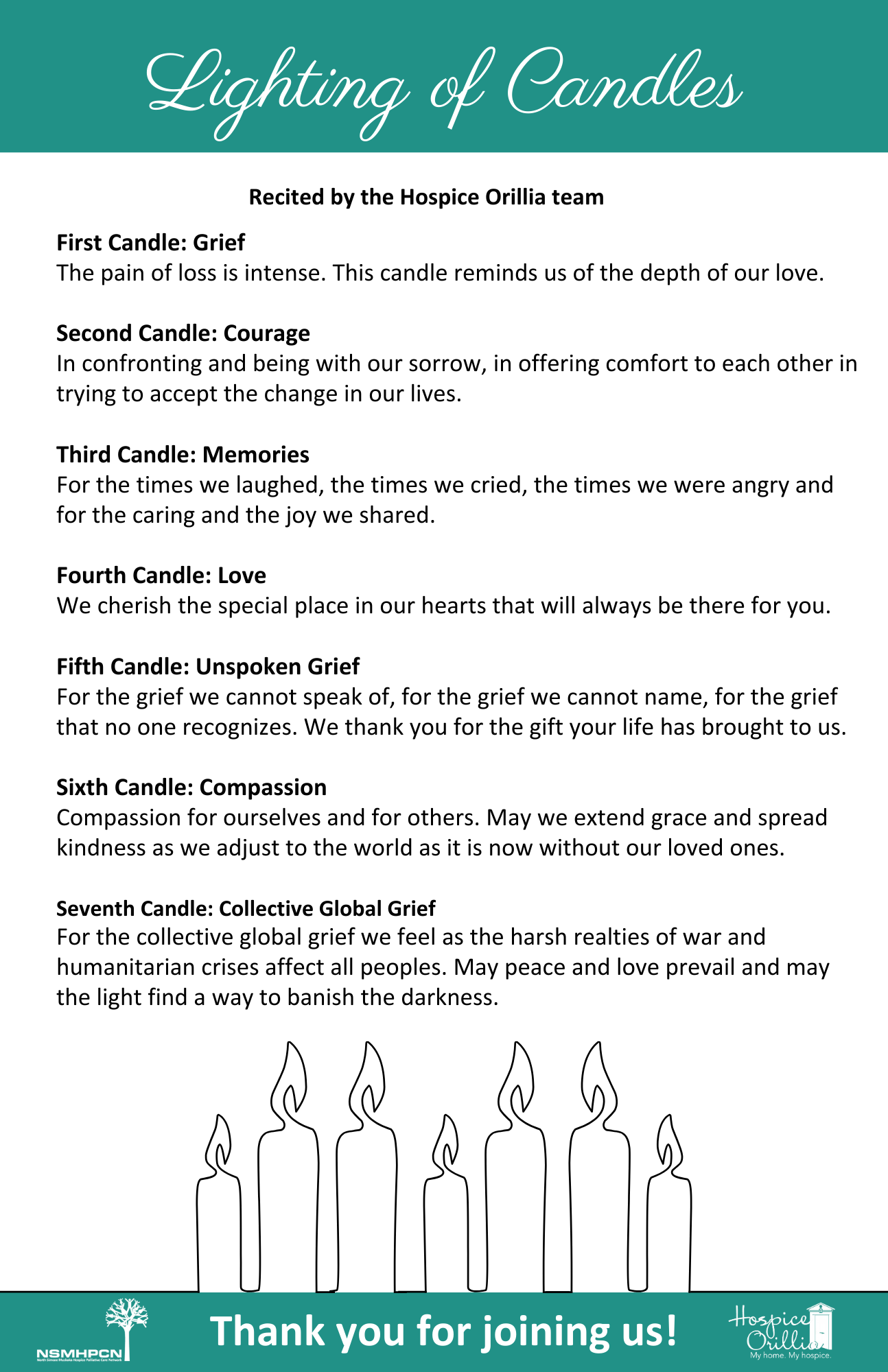 Each year Hospice Orillia hosts its annual Candles of Remembrance Ceremony where community members gather to honour those who are no longer with us.