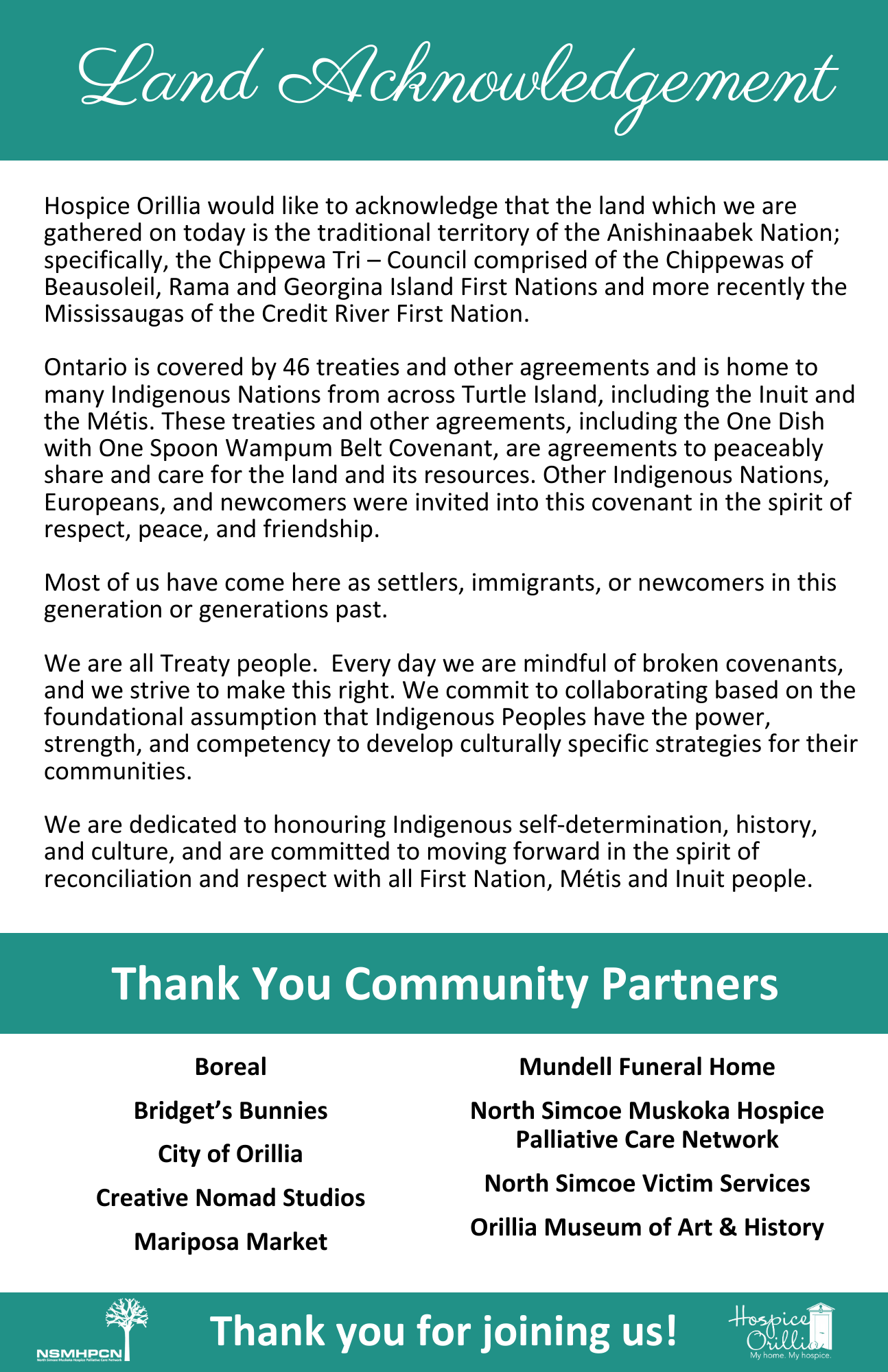 We extend our heartfelt gratitude to our community partners for helping make our memorial events as meaningful as the individuals we gather to honour.